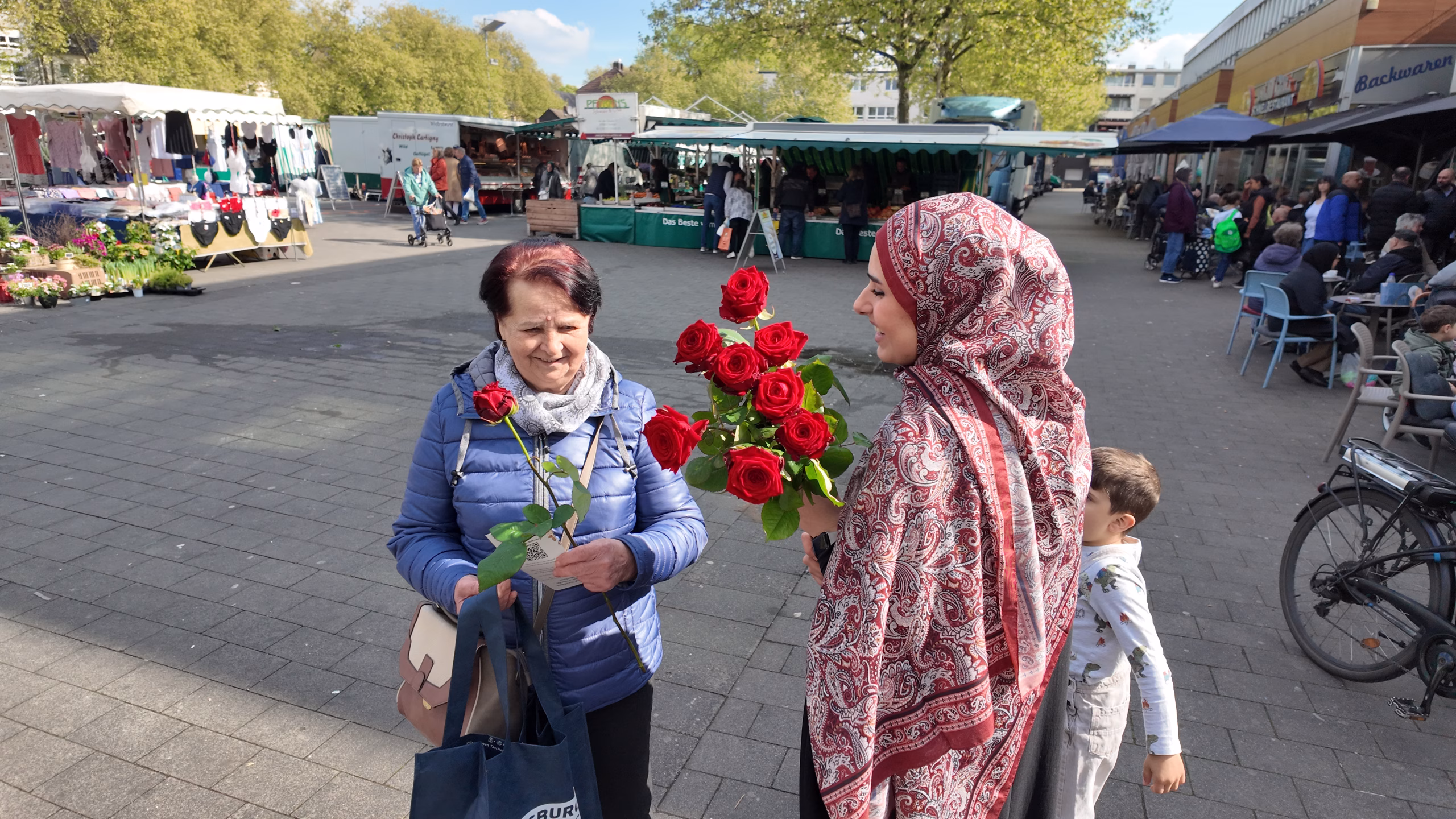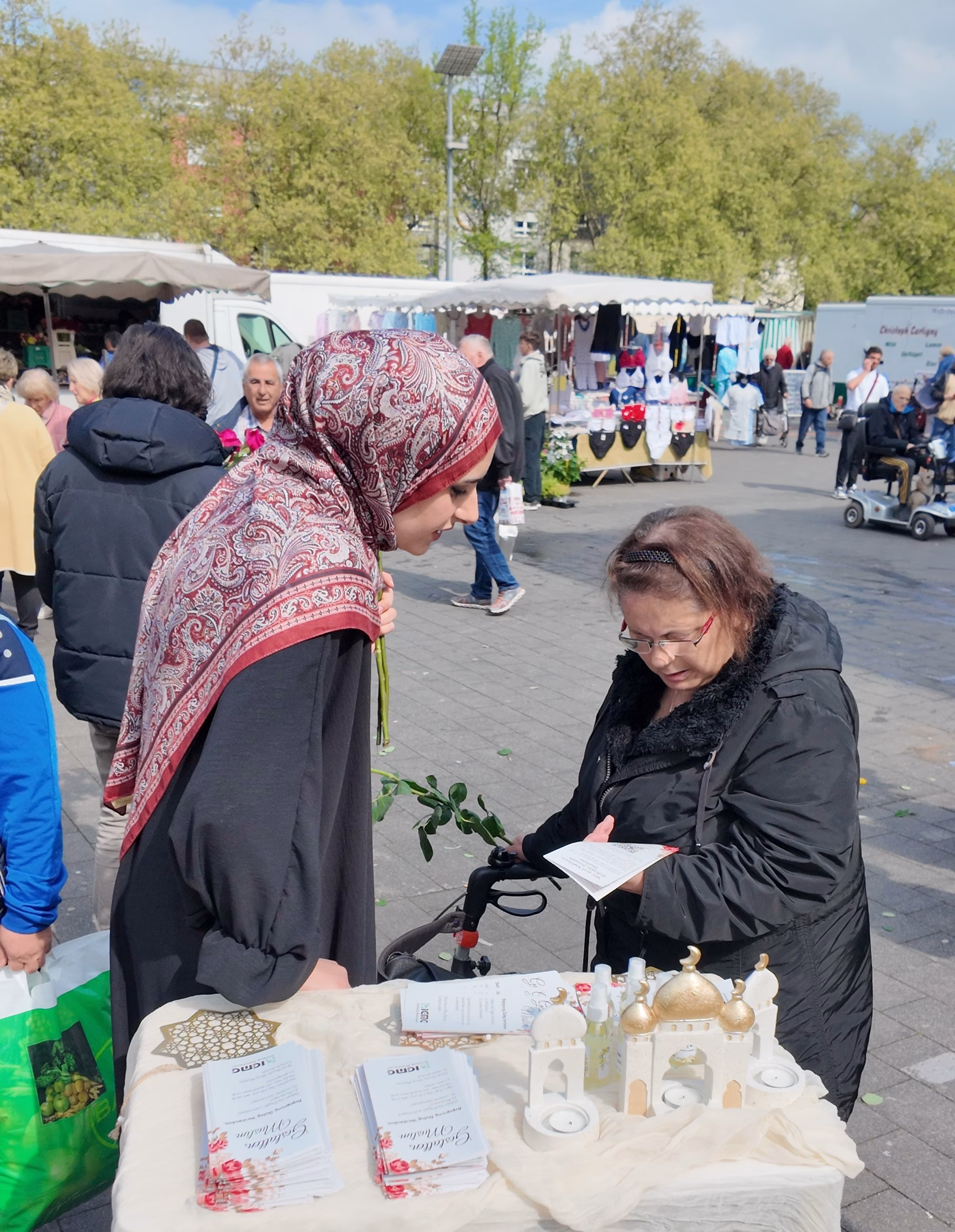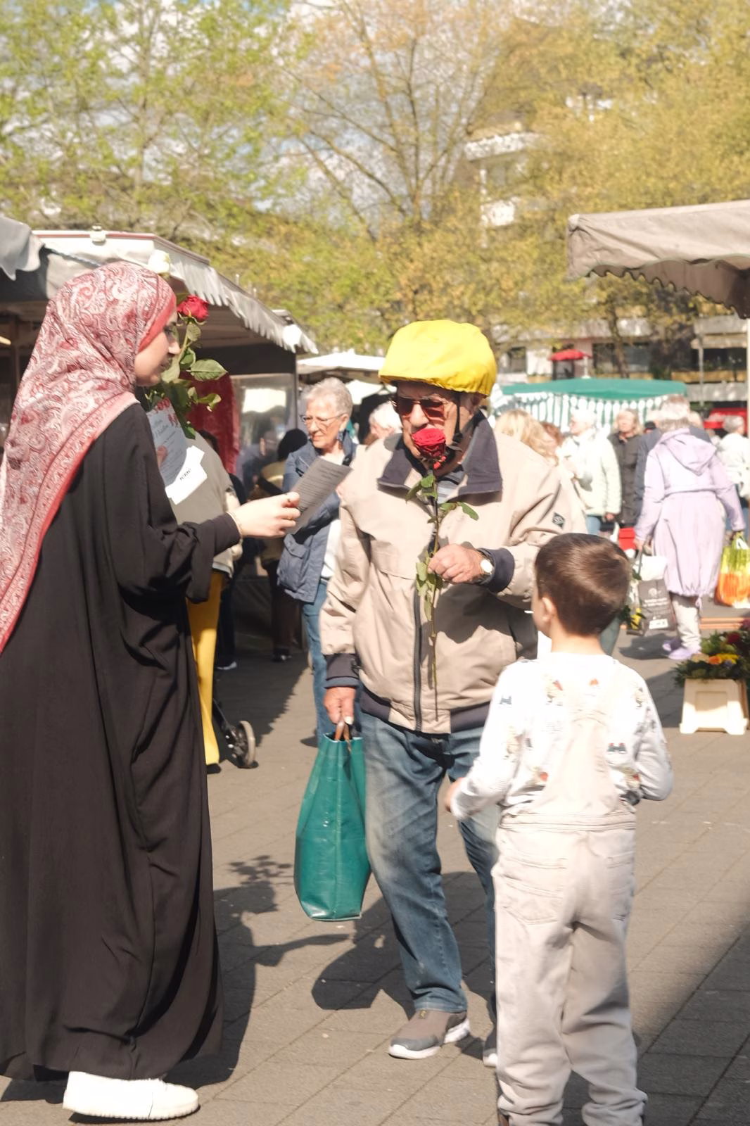 Am vergangenen Wochenende fand unsere Aktion „Gestatten, Muslim.“ auf dem Marktplatz in Rheinhausen statt – und wir sind dankbar und überwältigt: über 400 Menschen sind stehen geblieben, haben das Gespräch gesucht, Fragen gestellt, zugehört – und mit einem Lächeln (und einer Rose) weitergemacht.