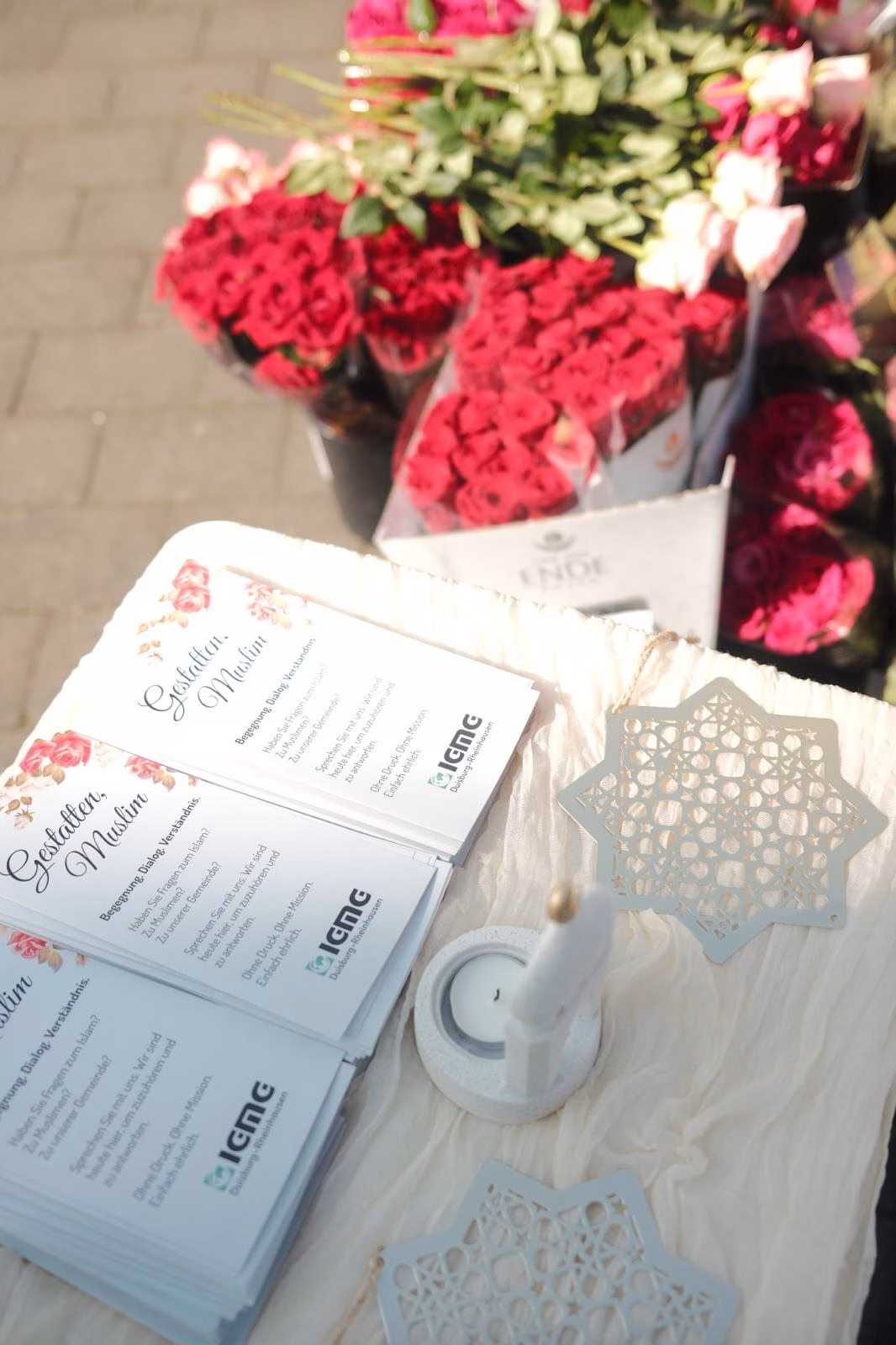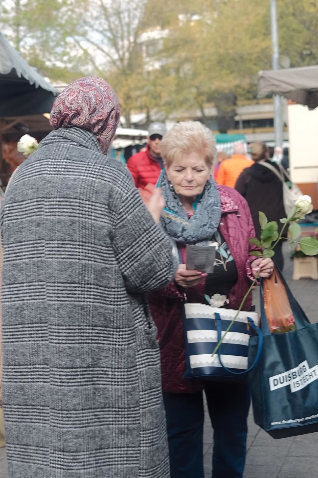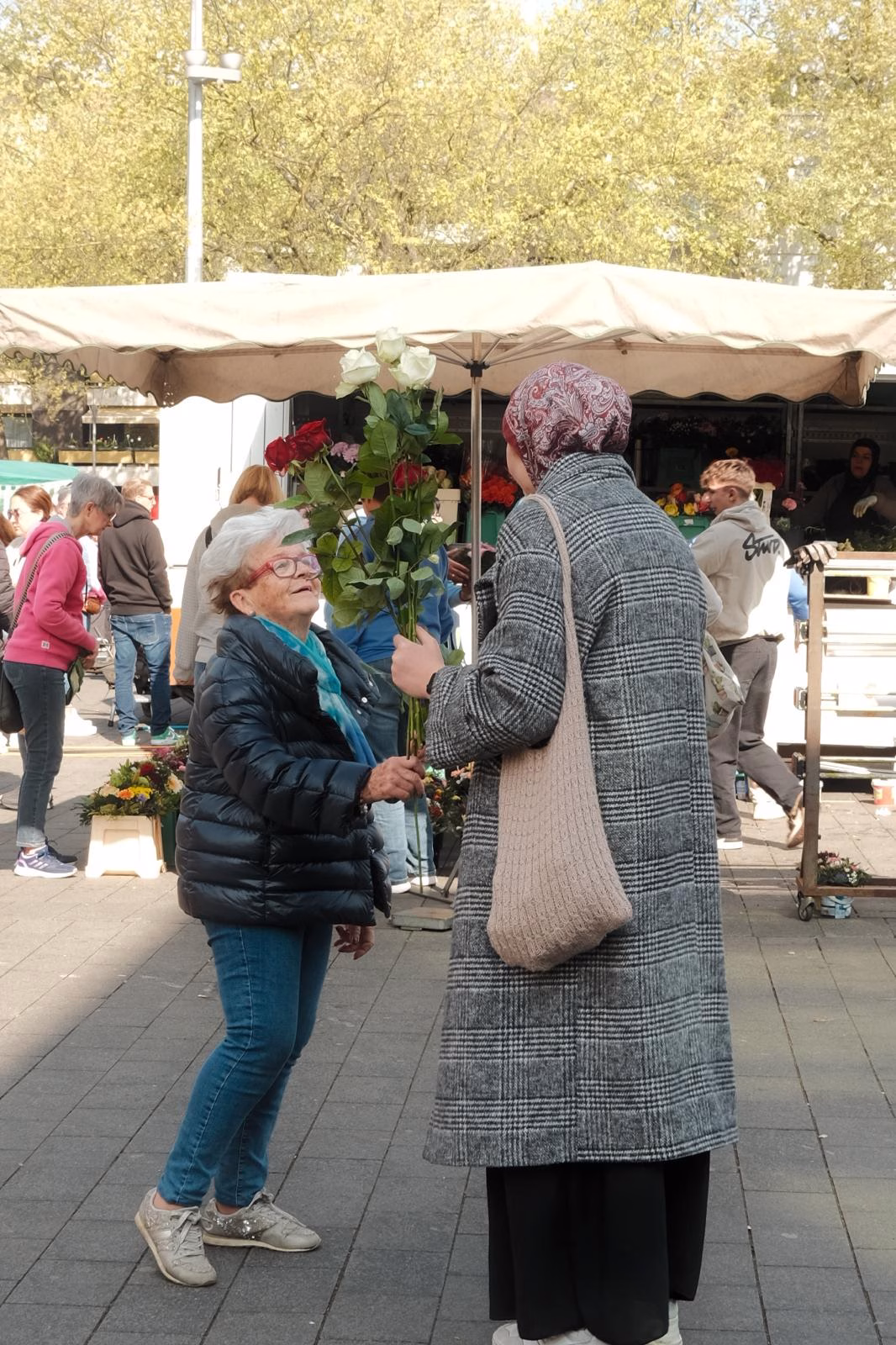 Am vergangenen Wochenende fand unsere Aktion „Gestatten, Muslim.“ auf dem Marktplatz in Rheinhausen statt – und wir sind dankbar und überwältigt: über 400 Menschen sind stehen geblieben, haben das Gespräch gesucht, Fragen gestellt, zugehört – und mit einem Lächeln (und einer Rose) weitergemacht.