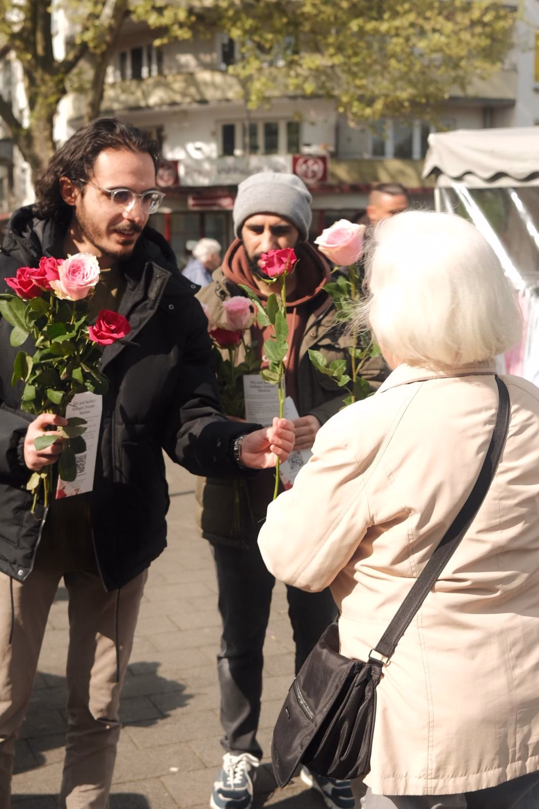 Wir danken allen, die gekommen sind, die Fragen gestellt und zugehört haben, die offen waren für Begegnung und bereit für neue Perspektiven. Und ein herzliches Dankeschön an unser großartiges Team, das mit Herz, Geduld und Engagement dabei war – ob beim Verteilen der Rosen oder bei den oft sehr persönlichen Gesprächen.