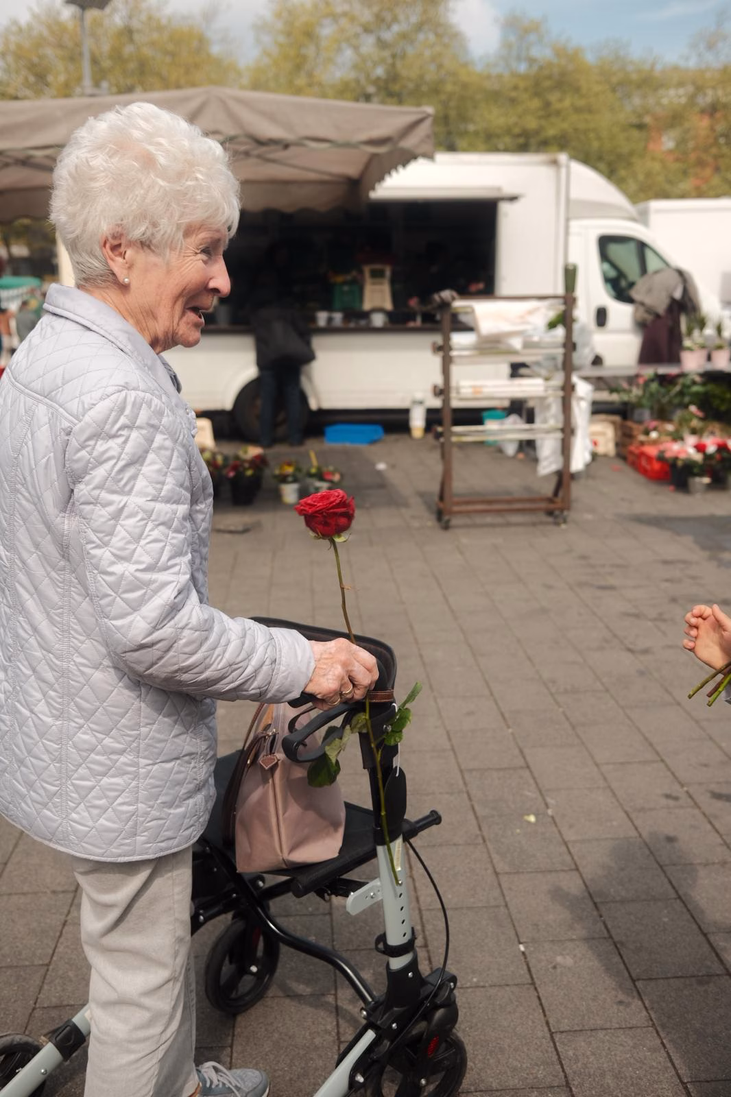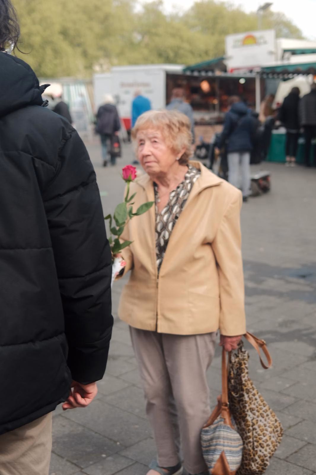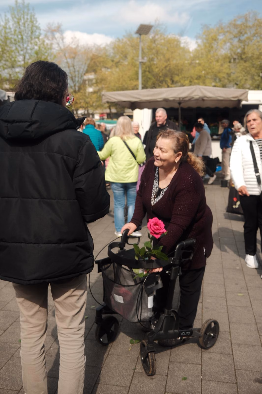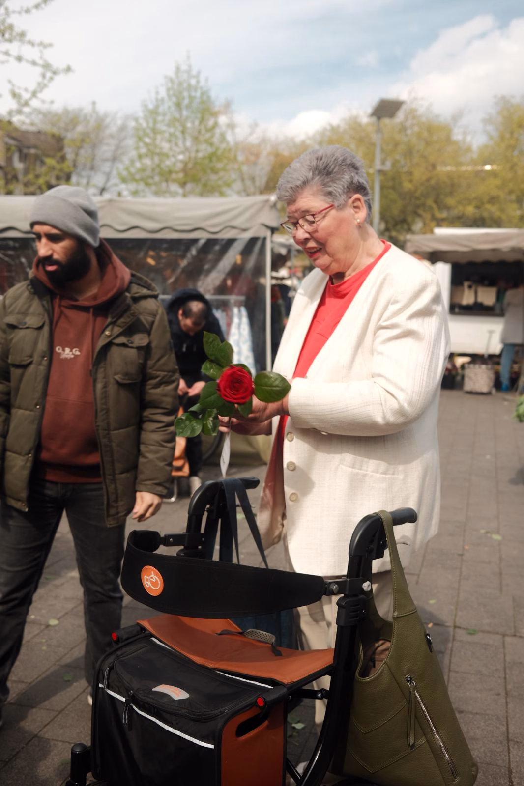 – Eine herzliche Dame, die sich sehr über die Rose freute.